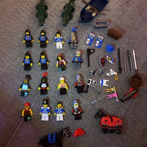 Minifigurerne er selv samlet, så våbnene og bukserne osv. passer ikke sammen og er derfor sat tilfældigt sammen.