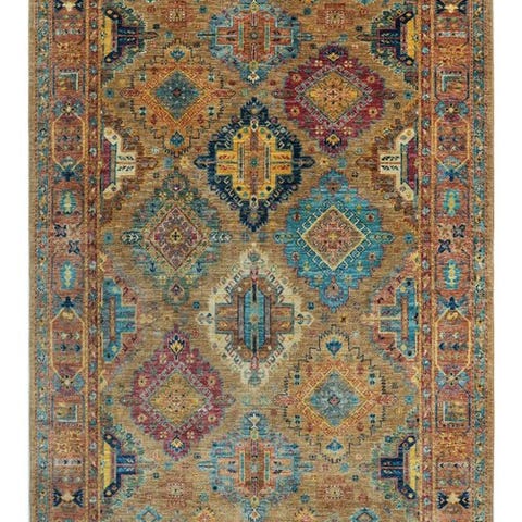 Denne håndknyttede designer-tæppe imponerer med sit fine Kazak-mønster og sin harmoniske farvekombination. De kunstfærdige geometriske motiver giver tæppet en tidløs elegance og gør det til et særligt blikfang i ethvert hjem.