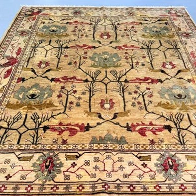 Dette tæppe kan identificeres som et Chobi (også kendt som Ziegler eller Peshawar), en relativt moderne produktion født i Pakistan og Afghanistan til det vestlige marked, inspireret af gamle persiske tæpper men fortolket i en nutidig nøgle.