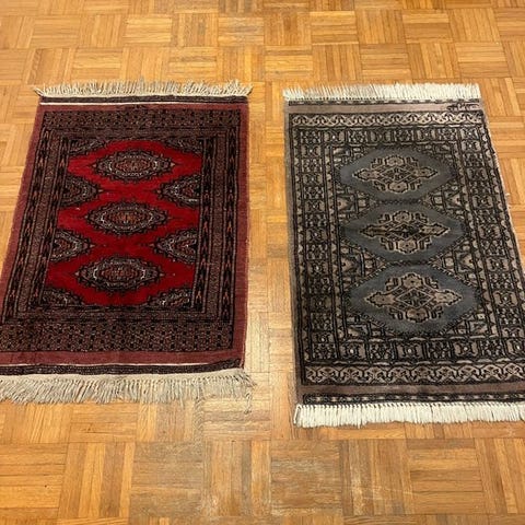 Antikt Bokhara-russisk-turkoman Tekke tæppe, vævet omkring årene 1920–1940 i forrige århundrede, typisk ikonografi af elefants fod (gul), klassisk i farverne, i god generel stand, god pilehøjde, viser kun få små brud som følge af tiden og som nemt kan restaureres, som på billedet. Ca. 290×183 cm