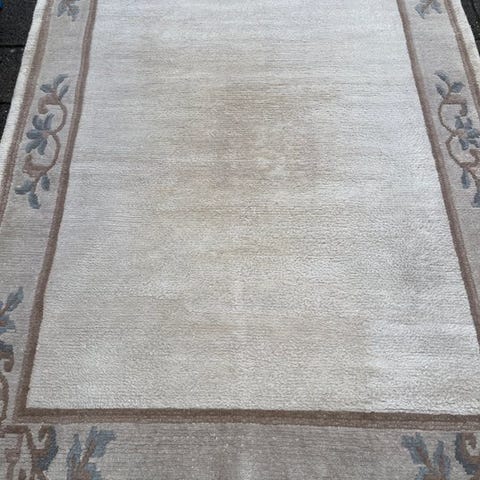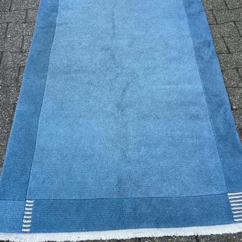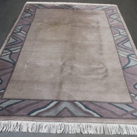 Oprindelse Nepal; model Nepal Modern - Gereinigd; håndknudet tæppe i uld på bomuld, professionelt renset, i meget god stand, størrelse 235 x 171 cm. Klik på den blå "gå til varen" knap, for at købe eller byde på denne vare. Den samlede pris vil blive vist inden du afgiver dit bud.