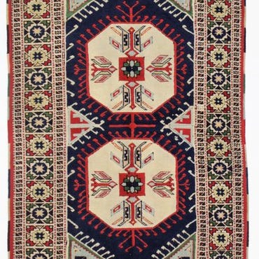 Det er et tæppe vævet efter traditionelle motiver fra Yuruk-regionen.
