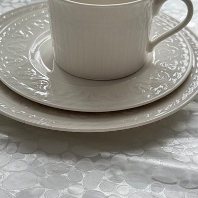 Porcelænet er af høj kvalitet med boheme-finish; alle stykkerne er underskrevet; de er porcelæn i ultrablank hvid nuance med detaljeret mønster typisk for deres stil og tidsperiode.