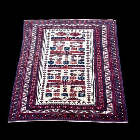 Dette er et håndknyttet orientalsk tæppe, lavet af holdbare, naturlige materialer. Måden at knope og mangfoldigheden i mønstrene gør tæppet til et unikum og fremhæver det autentiske og håndværksmæssige karakter.