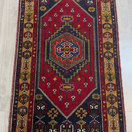 -- "Semi-antikt Yahyali af 100% uld, signeret og i smuk, brugt stand"