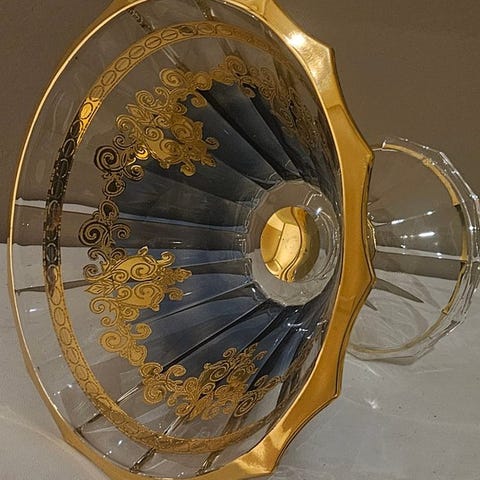 Faktisk et ægte kunstværk med facetsarbejde, båret af en massiv og luksuriøs base, der tilføjer et præg af majestæt.