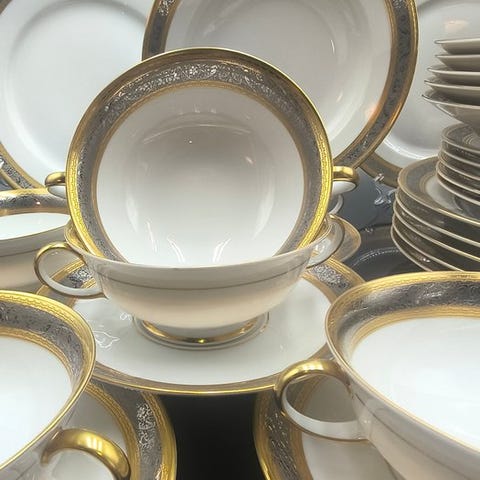 Til auktion tilbydes et raffineret Rosenthal bordservise, modellen Sanssouci, en af de mest ikoniske og genkendelige serier fra den historiske tyske fabrik. Dekorationen i relief med rokoko-inspiration, elegant og scenografisk, henviser til de store europæiske traditioner inden for porcelænsfremstilling af yndefuld kvalitet.