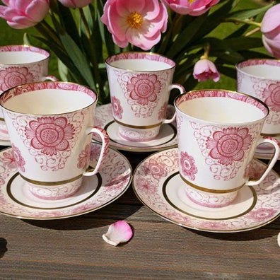 Lomonosov LFZ "Golden Net Pink" kaffesæt til seks