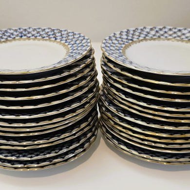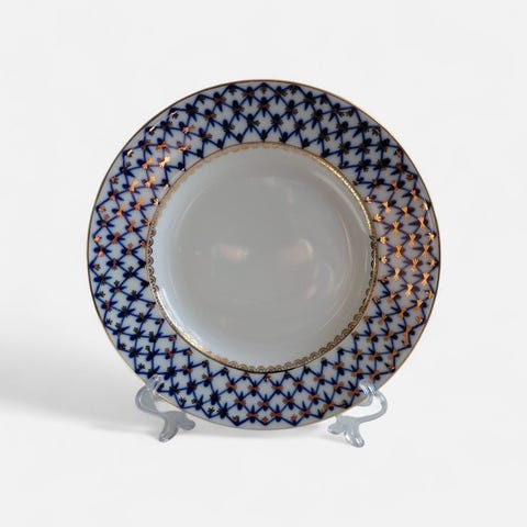 Fremstillet på Lomonosov Porcelain Factory (LFZ) i Sankt Petersborg (tidligere Leningrad) mellem 1970 og 1984, i perioden med det blå LFZ-mærke, repræsenterer disse tallerkener fortsættelsen af kejsersk traditioner under sovjetisk forfinelse.