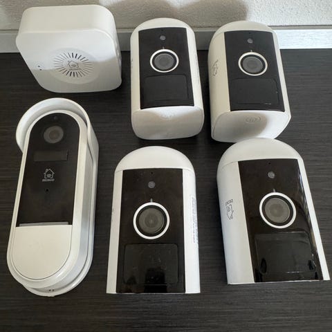 5 stk. Abus Smart Security World overvågningskamera til udendørs brug i hvid. Kameraet leveres med vægbeslag, strømforsyning og tilbehør til montering. Enheden har kuppelformet kamerahus og trådløs antenne til netværksforbindelse. Systemet er egnet til videoovervågning af fx indkørsel, have eller bygningens facade. Flere enheder kan bruges sammen som del af et samlet sikkerhedssystem.