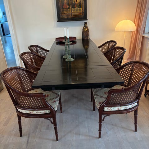 Har haft stolene i cirka 5 måneder og fik dem af min onkel i forbindelse med hans flytning, hvor han heller ikke længere har plads til dem.