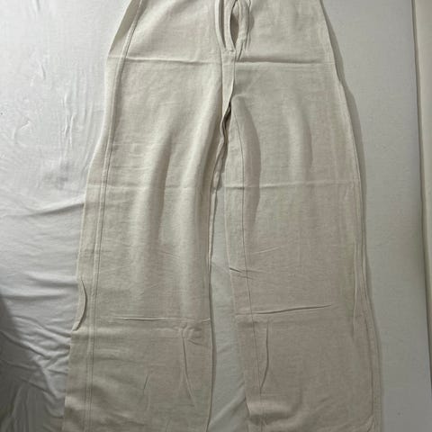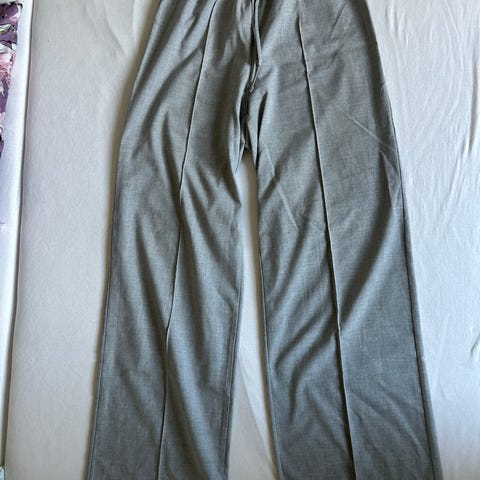 Lysegrå bukser købt i udlandet i størrelse M. Har snor til at kunne justere ved taljen og en lang streg på hvert ben.