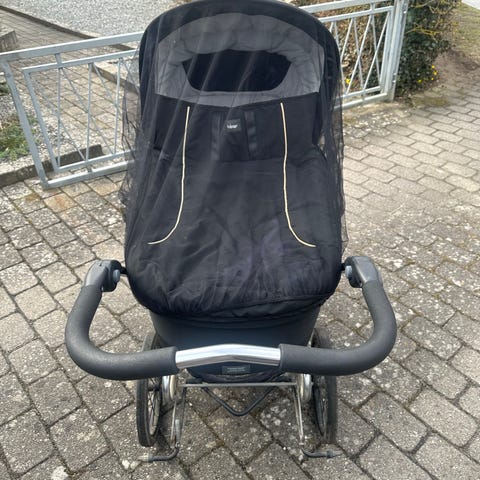 Sælger denne Emmaljunga barnevogn med madras og myggenet. Alt fungerer som det skal, hjul, bremser, dog en knap er faldet af.