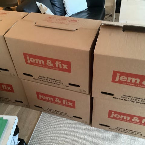 Seniorflyttekasser fra jem og fix meget solide og brugt en enkelt gang, de er i god stand.