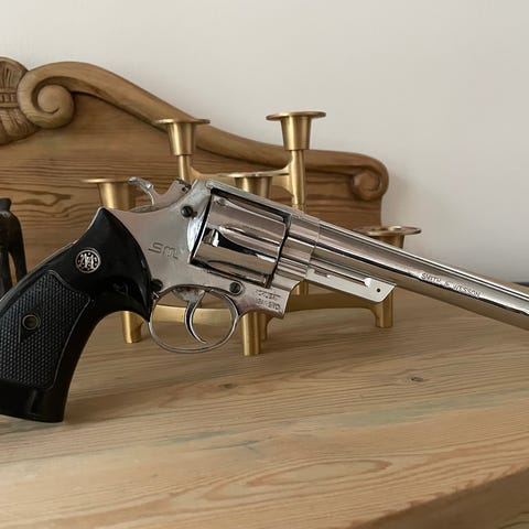Dekorativt sæt med to replika flintlock pistoler i træ og metal. Begge pistoler har udskårne og støbte detaljer i metallet samt træskæfter med buet greb. Den ene pistol er længere med slank løb, mens den anden er kortere og mere kompakt. Egner sig som pyntegenstand, samlerobjekt eller rekvisit. Der er tale om ikke-funktionsdygtige dekorationsvåben baseret på historiske flintelåspistoler. Samlet pris 500 kr. eller 300 kr stk. kan sendes med GLS for 50 kr..