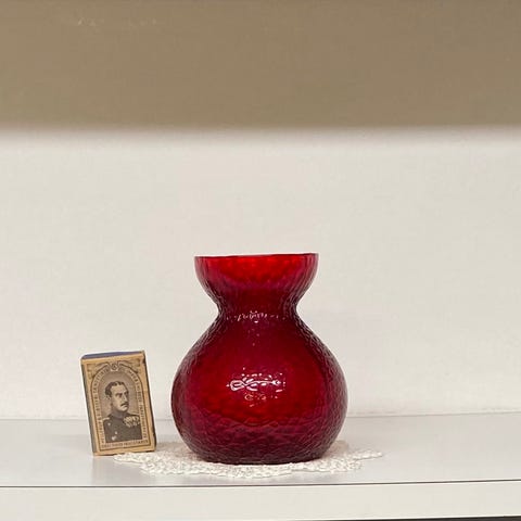 Højt hyacintglas med stor krave, vredet optik og anhæftning. Findes i mange farver.