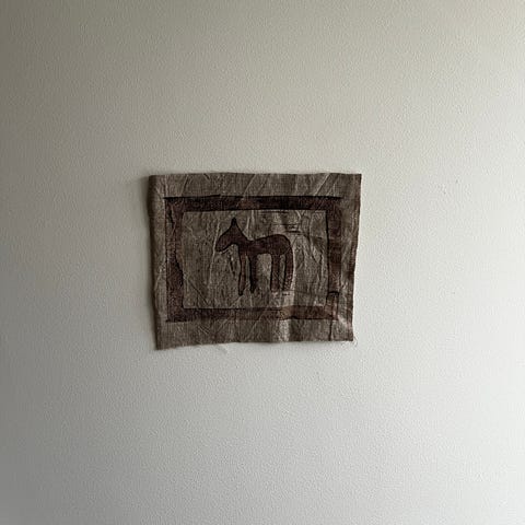 Linoleumstryk på stof. OBS: sælges uden ramme