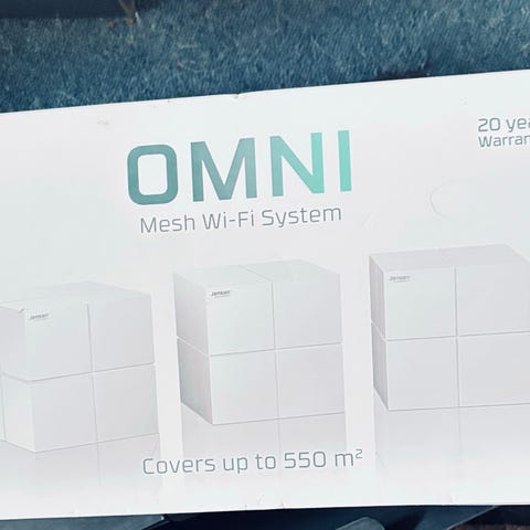Jensen Omni Lite router mesh wi-fi system i hvid. Systemet består af flere enheder, der arbejder sammen for at give trådløst netværk i hjemmet. Enhederne understøtter mesh wi-fi, hvor én enhed tilsluttes modem eller eksisterende router, og de øvrige placeres rundt i boligen for at udvide dækningen. Hver enhed har netværksporte på bagsiden til kablet tilslutning af udstyr. Velegnet til trådløs internetdækning i lejlighed eller hus, hvor der ønskes mere ensartet wi-fi-signal i flere rum.