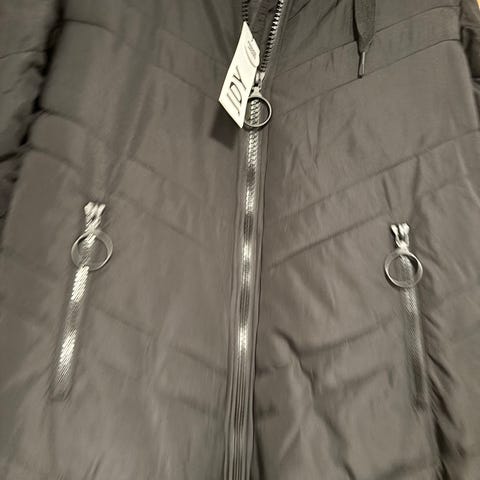 ONLY vinterjakke til kvinder i størrelse L. Jakken er sort og fremstillet i polyester. Den har hætte med aftagelig eller fast pelskant (ud fra billeder), gennemgående lynlås med knaplukning udenpå samt flere forlommer med knaplukning. Velegnet som varm overtøjsjakke i den kolde sæson.