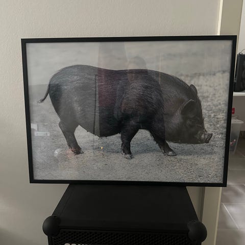 Print på lærred med sort får i ramme