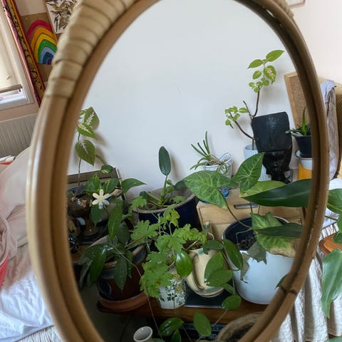 Lille fint væg spejl fra Ib Laursen med ramme af bambus. Vil passe fint FX i sommerhus eller kolonihave. 26,5× 20,5 cm.