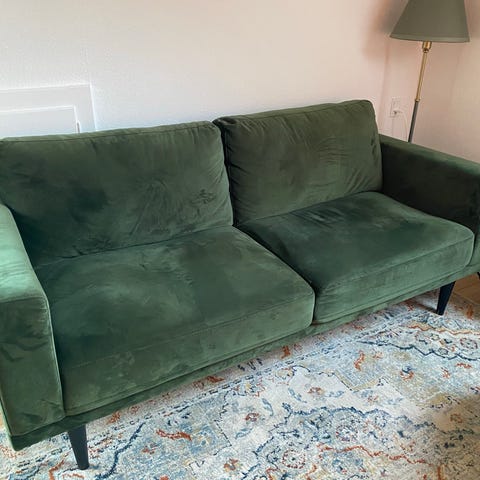 Sofa med brugsmærker - men pæn og i en flot farve