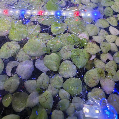 Akvarieplanter i form af flydeplanter, velegnet til brug i akvarier. Planterne dækker vandoverfladen og kan give skygge og skjul til fisk og andre akvariedyr. Egner sig til både ferskvandsakvarier og som dekorativ beplantning i mindre vandmiljøer i hjemmet.