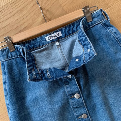 Klassisk denimnederdel fra Dr. Denim Jeansmakers i blå vask. Modellen har den klassiske 5-pocket stil med lynlås og knap foran samt bæltestropper. En tidløs nederdel der kan styles både casual med sneakers eller mere feminint med sandaler.