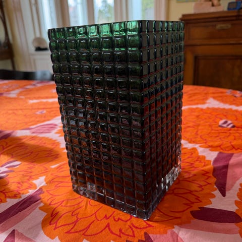 Iittala vase i porcelæn med grøn yderside og lys inderside. Vasen har guldfarvet kant foroven og en dekoreret fod med farverige blomster- og bærmotiver samt guldfarvede detaljer. Velegnet som dekorativ vase til blomster eller som pyntegenstand i hjemmet.