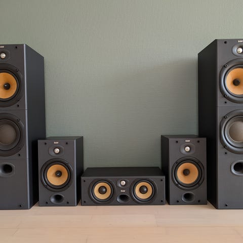 B&W P5 højtalere - har brugsspor og den ene diskant er trykket, men kan rettes ud da den er blød
