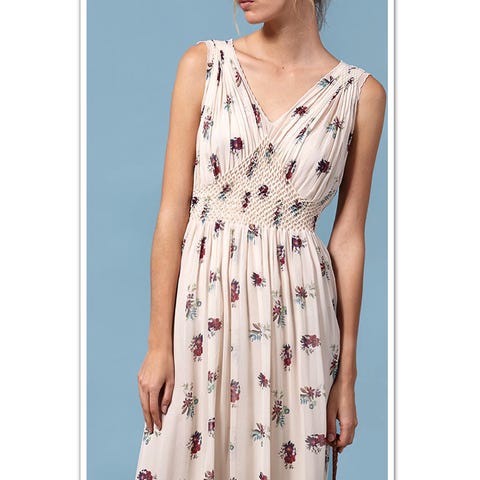 Der følger et løst tørklæde med, som kan bruges til bælte eller bare løst om halsen.