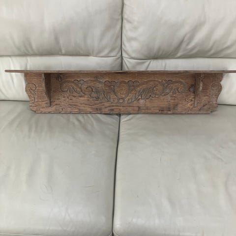Vintage trævindue væghylde med glas.