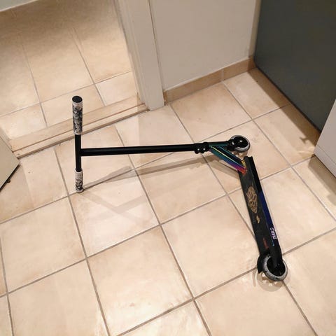 Rask løbehjul med sort styr og stel samt deck med grafisk guldprint. Løbehjulet har T-formet styr med gummihåndtag og små hjul, egnet til kørsel på hårde underlag som asfalt eller beton. Farvekombinationen er primært sort med detaljer i guld og flerfarvet metal på hjulbolte. Velegnet til børn eller unge, afhængigt af højde og behov.