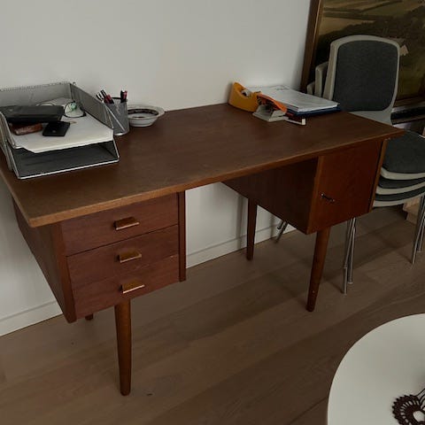Retro skrivebord teak med træskuffer
