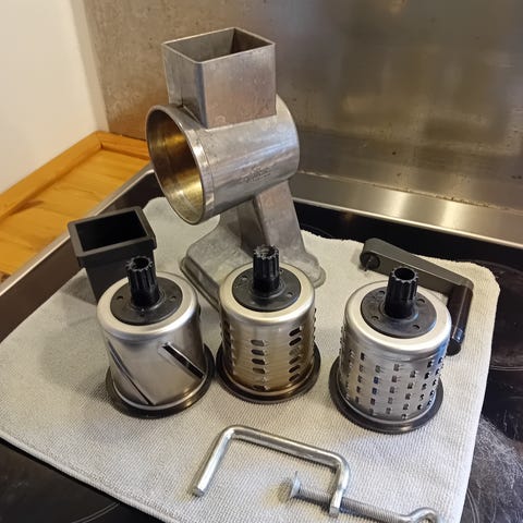 Ankarsrum, har lavet denne grønsags snitter. Den ligner til forveksling den hånddrevde Zyliss. Jeg købte denne for at kunne lave store portioner til min vegetarfamilie. Uden problemer og på ingen tid, snitte er der snitte 4 kg gulerødder i en ekstern skål. Snitterne sælges gerne sammen med min Electrolux Assistent maskine (se min anden annonce).