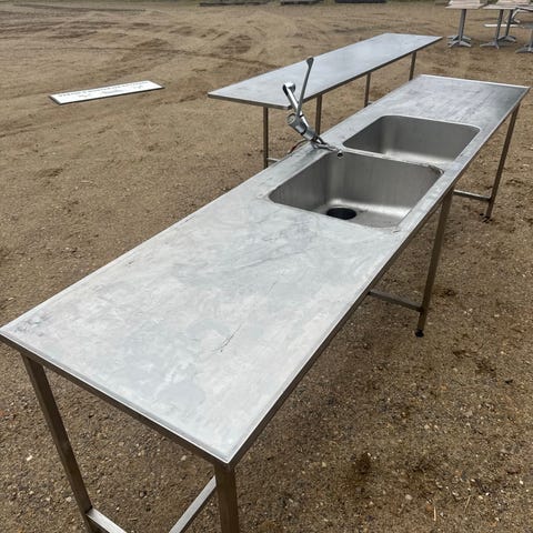 Rustfri stålvask arbejdsbord med dobbeltvask og hylde
