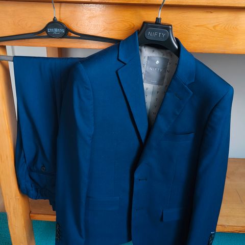Jakkesæt, Jakkesæt, Zara, str. 152, Lækkert jakkesæt i en skøn blå farve i hør/bomuld. Jakken er str. 152 og bukserne 146, og sættet er brugt til et bryllup og er i perfekt stand. Nypris 700 kr.