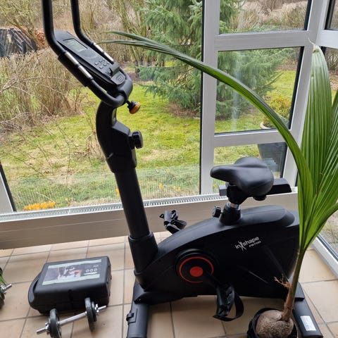 InShape Mini Bike motionscykel med display i sort. Kompakt pedaltræner til brug siddende på stol eller sofa. Udstyret med LCD-display, der viser tid, distance, hastighed, omdrejninger og estimeret kalorieforbrug. Modstanden kan justeres manuelt med drejeknap. Egnet til træning af ben eller arme ved at placere fødder eller hænder i pedalerne. Stabil base med skridsikre fødder og bærehåndtag for nem flytning.