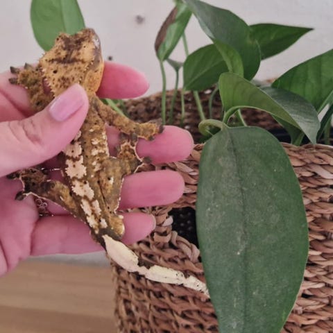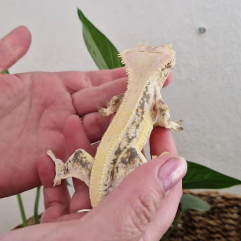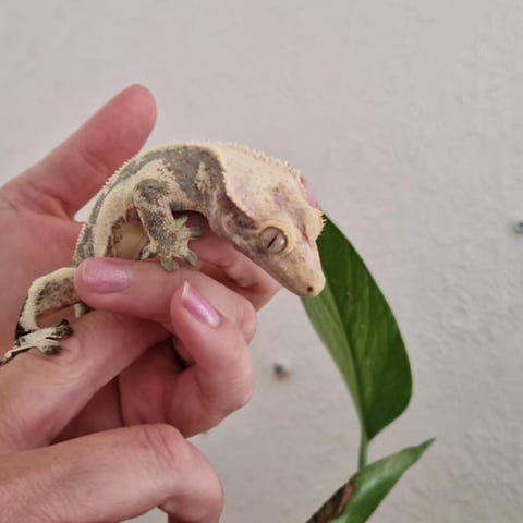Lily White kronegekko. Han. Ca 2 år gammel. Spiser, skifter ham osv, uden problemer. Kan fint håndteres.