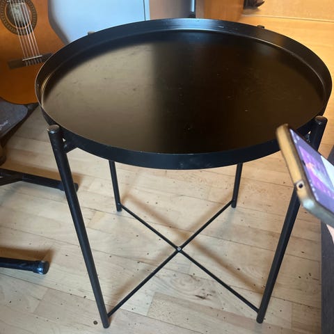 Designer sofaborde, salt& pepper. Sort finér og hvid lak. Tung fod, står stabilt.