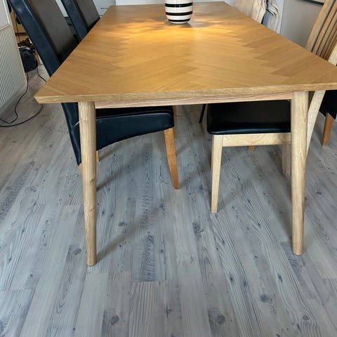 Bordet er i pæn stand og fungerer perfekt. Passer godt til både lejlighed og hus.