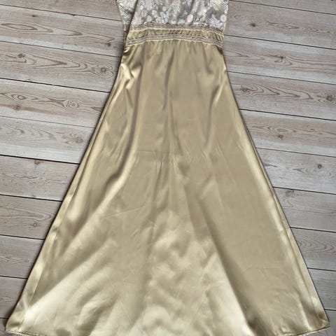 Smuk lang kjole i champagnefarve, fra Aview, str 38. Brugt én gang til bryllup. Stand er som ny.
