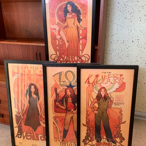 Disse billeder er en del af et sæt plakater baseret på kult-tv-serien Firefly og filmen Serenity.