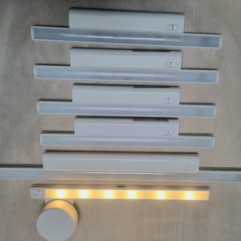 Stötta skabs 32cm lampe på løse batterier sælges. Tænder når man åbner skabet.
