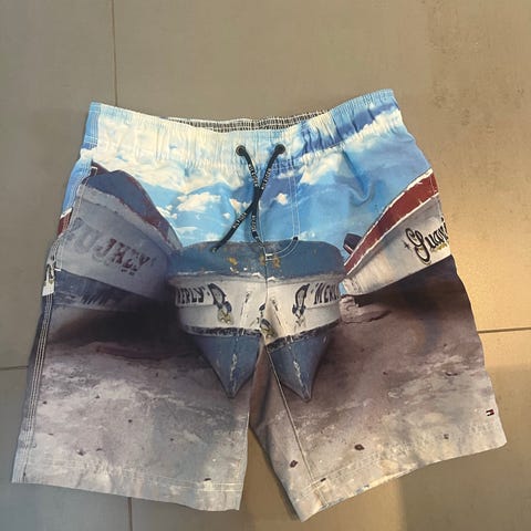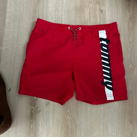 Badetøj, Badeshorts, Tommy Hilfiger, str. 140, Lyseblå badeshorts fra Hilfiger med print, er blevet brugt flittigt, deraf den lave pris.Tjek evt mine andre annoncer med drengetøj og fodboldtøj