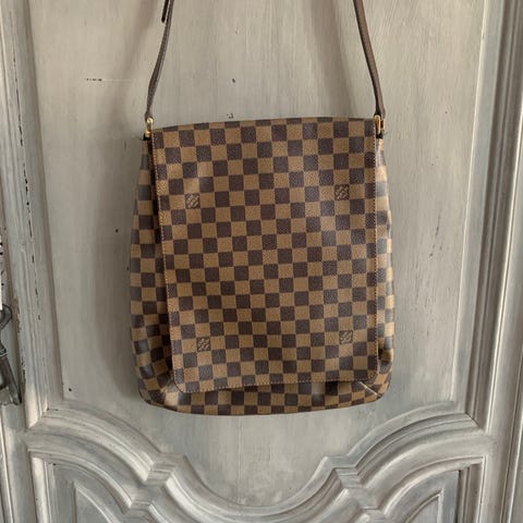 Velholdt Louis Vuitton Musette monogram crossbody/skulder taske med flap lukning.