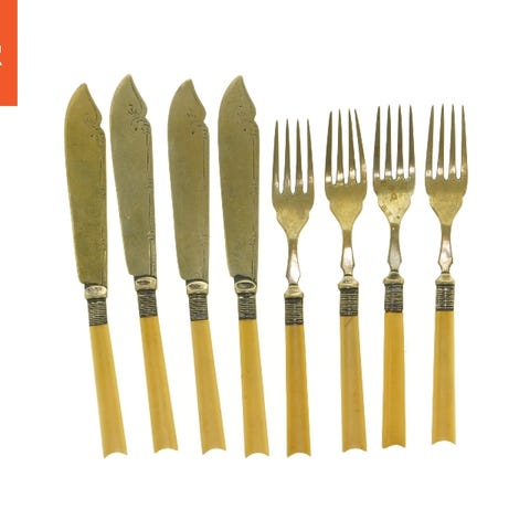 Dette sæt er et klassisk eksemplar på antikt fiskebestik eller frugtbestik,