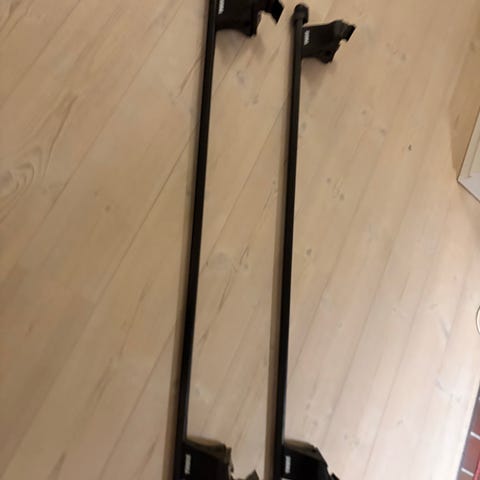 Thule tagbøjler i sort. Sættet består af to tværstænger med låsbare fødder. Tagbøjlerne er egnet til montering på bilens tag og kan bruges som base til fx tagboks eller cykelholder. Justerbar længde kan aflæses på integreret måleskala på stængerne.