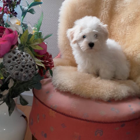 Der med følger et tæppe, lidt hvalpe foder mm.