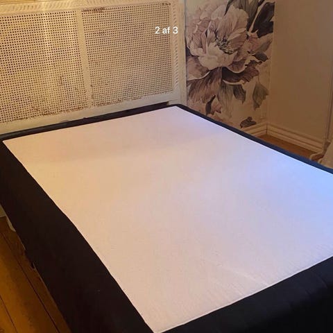 Romantisk sengegærde i antik look med boxmadras i målene 140x200